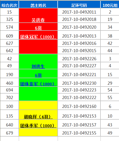 所有足环号码由我手写,特公示三日(27-29),请鸽友检查自己的环号是否正确。