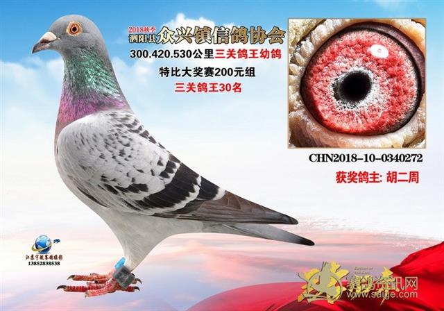 各位鸽友,众兴鸽协2018年秋季三关鸽王拍卖会时间定于11月24日(周六)早晨8点整,有鸽子参加拍卖的鸽友务必在7点前把拍卖鸽送进会场进行装笼编号,还请各位配合。 拍卖地点:佳源广场二楼佳源大酒店(城西大本钟向东80米或者众兴鸽会新店后面200米) 昨天第一次上传的照片中有些鸽子的成绩被摄影师标注错了,现在都已改正过来,请以下面的照片为准!