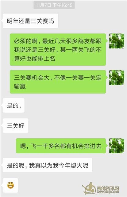 关赛,大大提高了广大普通鸽友的进奖机率,是对广大普通鸽友的一种保护。所以明年秋季继续打关赛,是我们鸽会义不容辞的责任和选择。