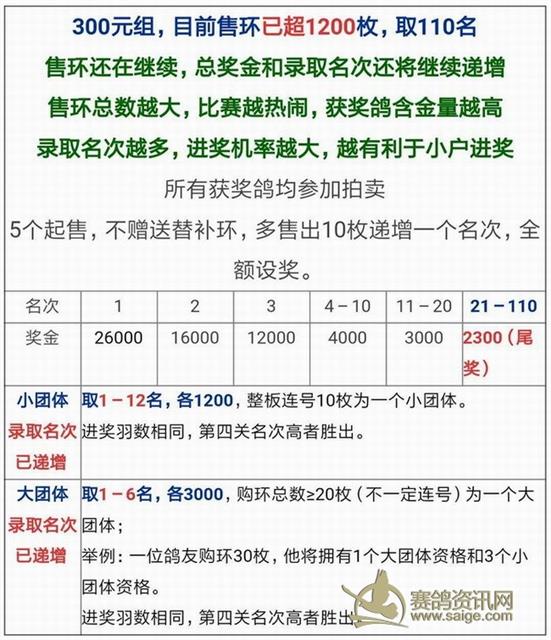 三、购买5枚300元组圈的新人鸽友,只要最终飞进奖2羽,即荣获“2019年秋季第二届最佳新人奖”。