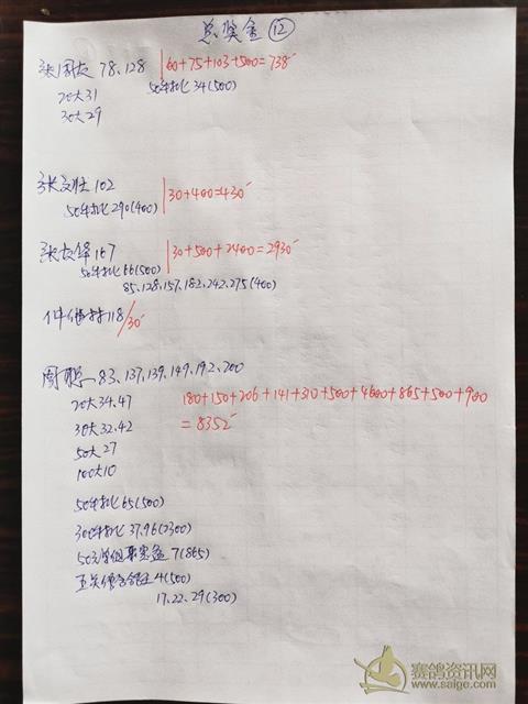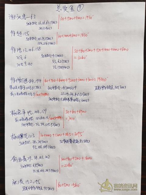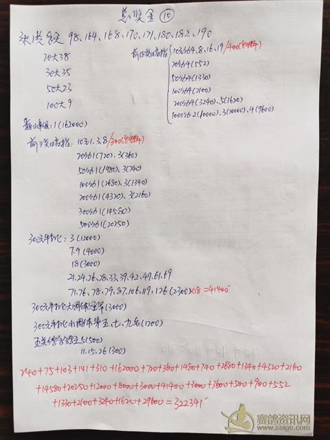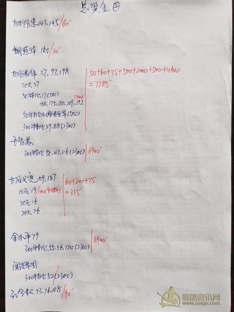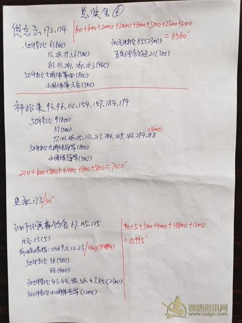 【最新】:2019年秋【1+4】关鸽王大奖赛总奖金分配