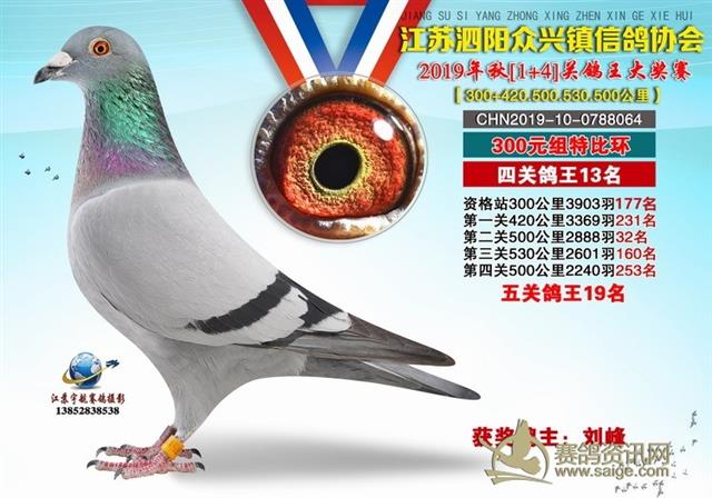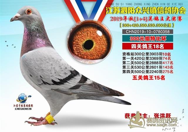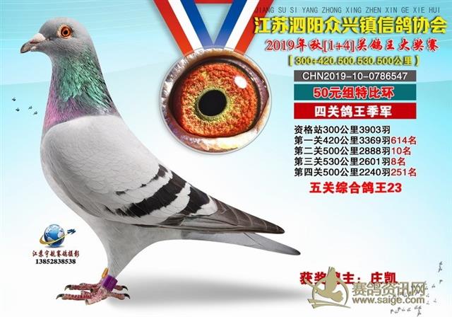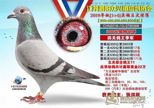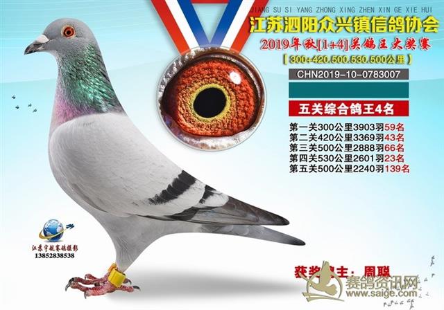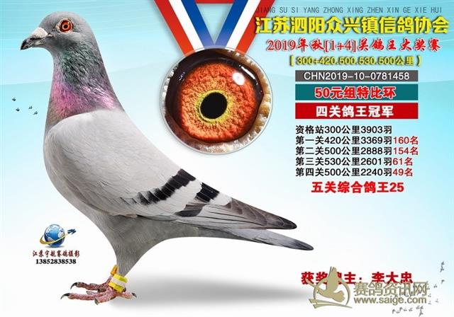 【最新】:2019年秋【1+4】关鸽王大奖赛-五关综合鸽王-获奖拍卖鸽照片欣赏!