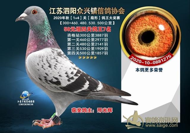 20年秋【1+4】关【扇形】鸽王大奖赛-50元组-获奖拍卖鸽欣赏!