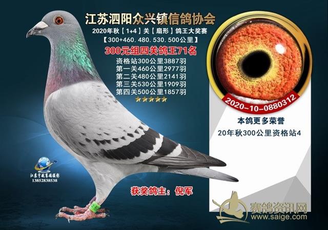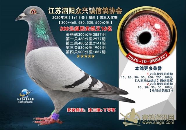 20年秋【1+4】关【扇形】鸽王大奖赛-多项成绩-获奖拍卖鸽欣赏!
