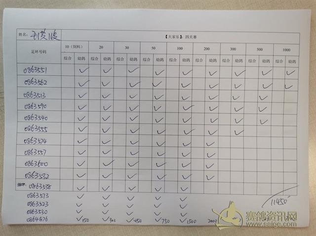 【最新】:21年秋-50鸽粮赛【大家乐】明细(公示一天)