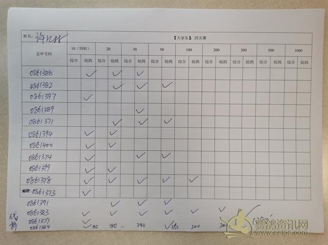 公示一天 1、 本次鸽粮赛所有鸽友全部微信报名由我代抄,因此今天(16号)公示一天,在此公示期间请每一位参加的鸽友务必认真核对自己的每一个环号和组别打钩是否准确无误。如果确是我抄写错误,我会在鸽会微信群公开证明后为之更改。 2、公示期结束后如果还因环号等其它任何问题而影响最终成绩排名,本人及本鸽会将不负任何责任。 特此公告。
