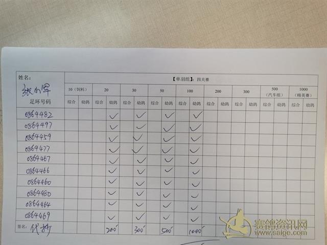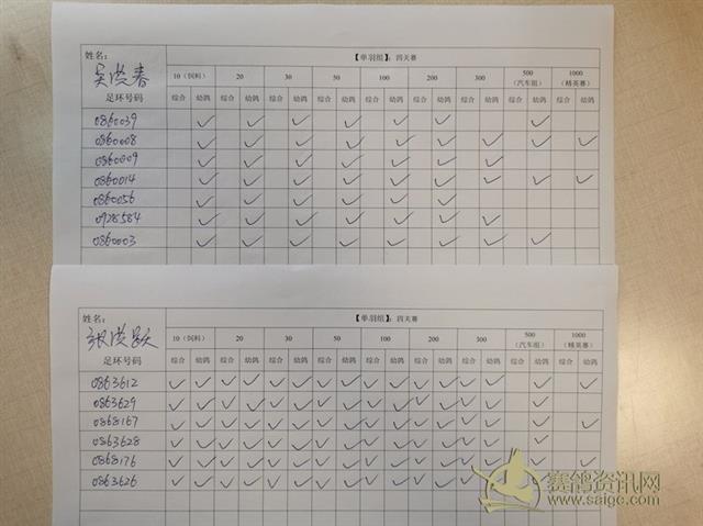 公示一天 1、 本次鸽粮赛所有鸽友全部微信报名由我代抄,因此今天(16号)公示一天,在此公示期间请每一位参加的鸽友务必认真核对自己的每一个环号和组别打钩是否准确无误。如果确是我抄写错误,我会在鸽会微信群公开证明后为之更改。 2、公示期结束后如果还因环号等其它任何问题而影响最终成绩排名,本人及本鸽会将不负任何责任。 特此公告。