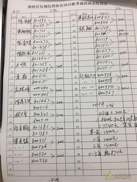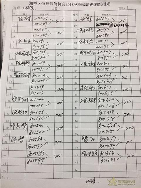 18年秋季三关大奖赛福清站二羽组内表