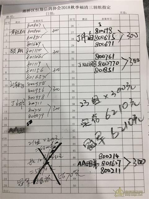 三金鸽舍 800308 10月11日晚上集福清站没有上笼,现更改足环号码为 800309 其他不变,请会员校队