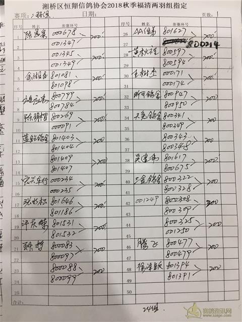 三金鸽舍 800308 10月11日晚上集福清站没有上笼,现更改足环号码为 001249 其他不变,请会员校队