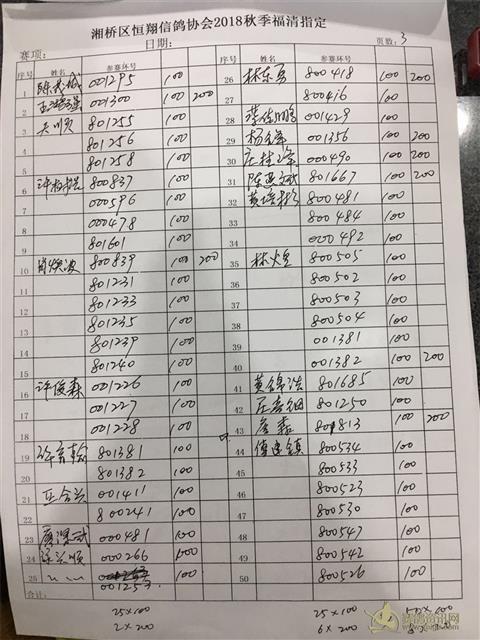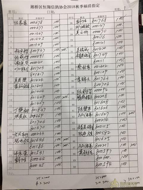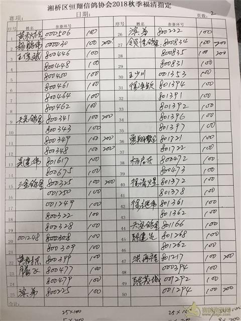 三金鸽舍 800308 10月11日晚上集福清站没有上笼,现更改足环号码为 001248 黄培彬 800492更改为000491 泳兴顺 000266更改为000267 其他不变,请会员校队