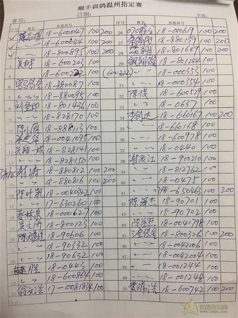 顺丰成鸽双关友谊赛第二关指定内表及封车照片