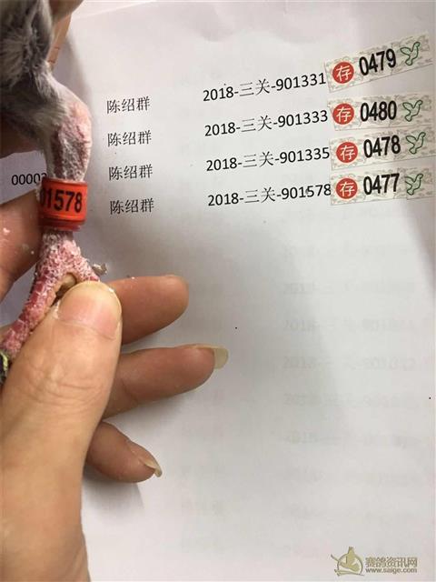 指定A组2名 陈绍群 足环号码 2018-三关-901578