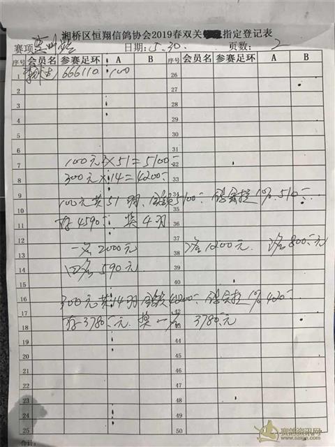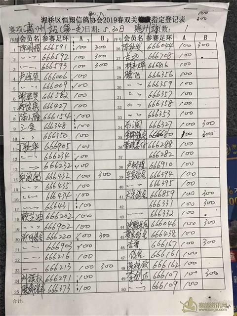 潮州市湘桥区恒翔信鸽协会2019年春双关惠州第一关指定登记表