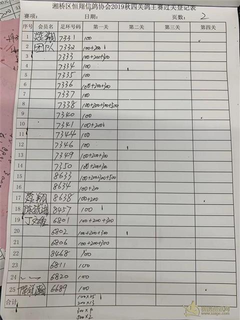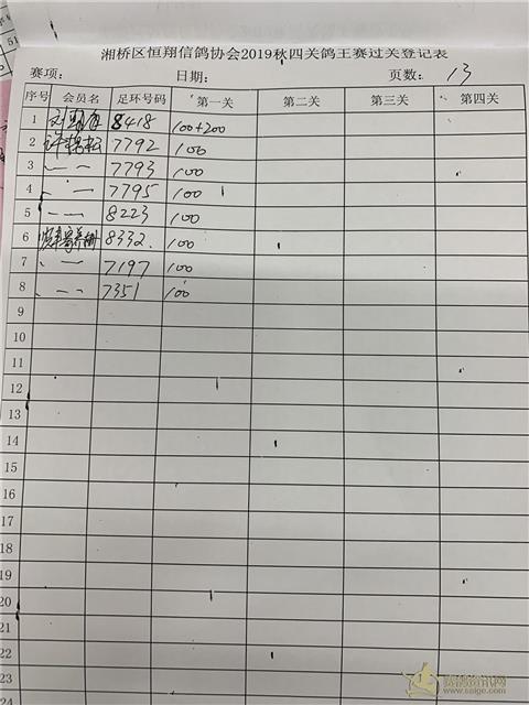 谢涛足环号错误更改为7909,7910 牛仔鸽舍足环号错误更改为6457