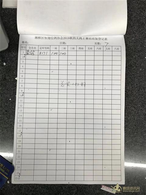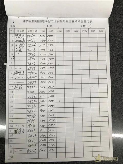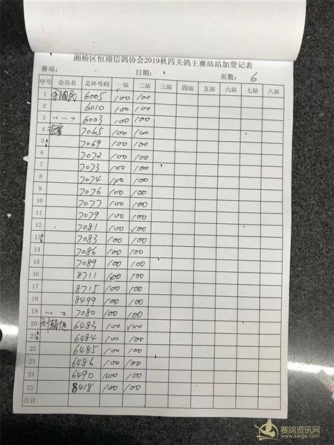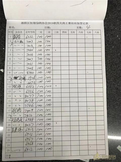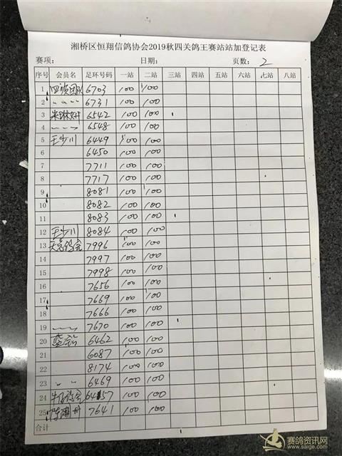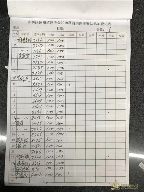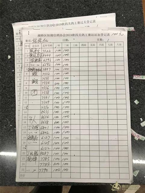 湘桥区恒翔信鸽协会2019年秋四关鸽王赛站站加第二站登记表
