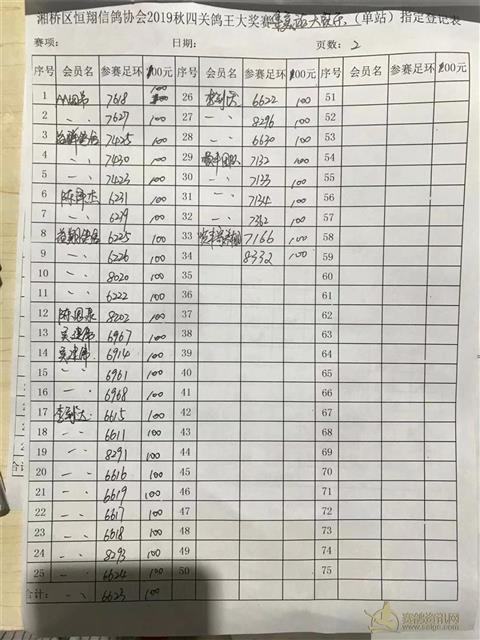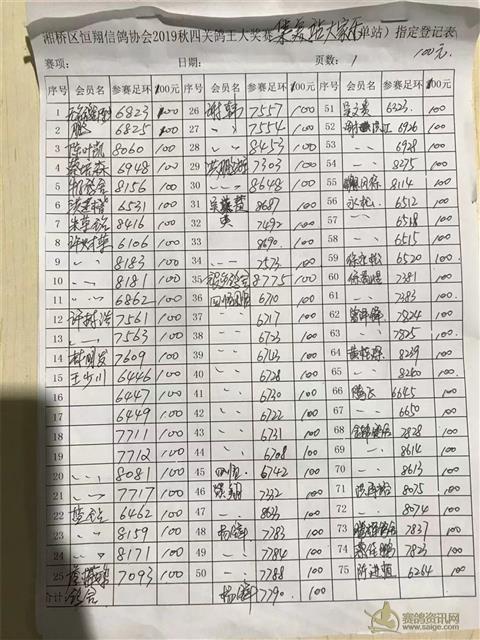 2019年秋四关鸽王大赛集美站大家乐指定登记表