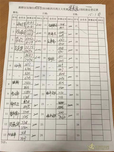 2019年秋四关鸽王大赛集美站2羽组指定登记表
