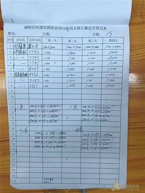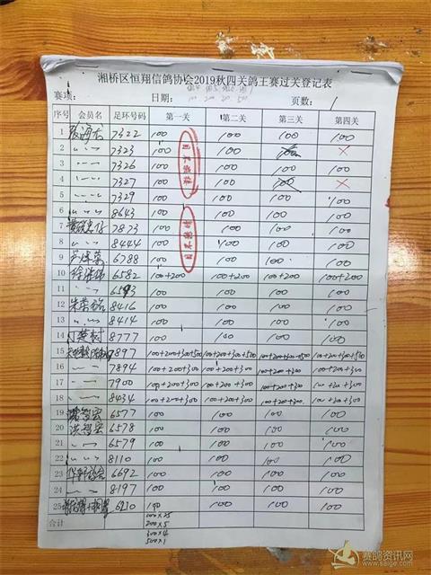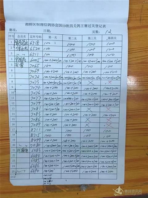 2019年秋四关鸽王大奖赛第四关过关登记表和过关奖金分配比例(校对3天,如有异议请及时联系鸽会)