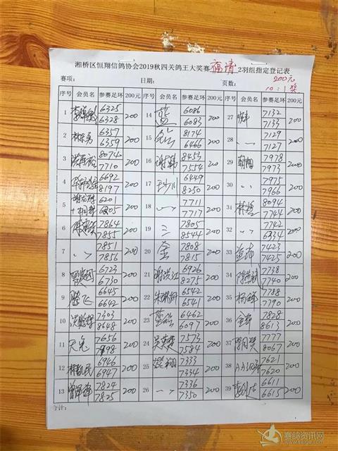 2019年秋四关鸽王大奖赛福清2羽组指定登记表