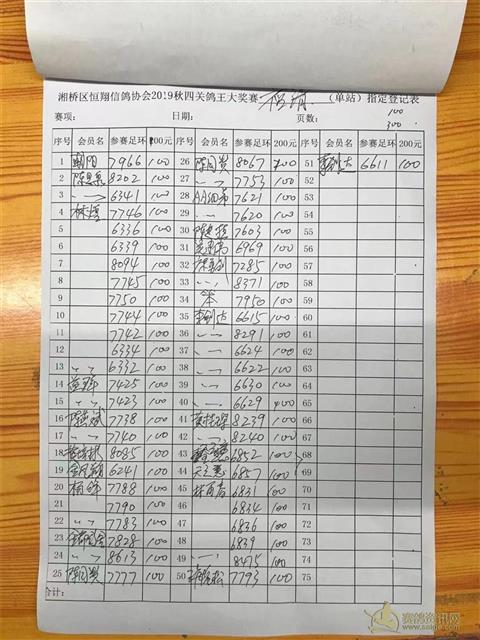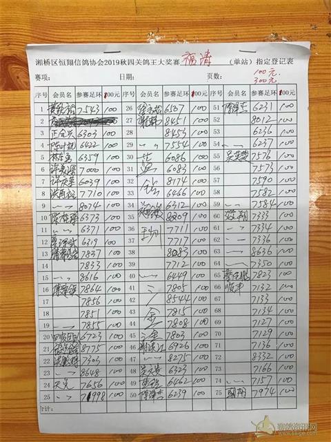2019年秋四关鸽王大奖赛福清单站100元指定登记表