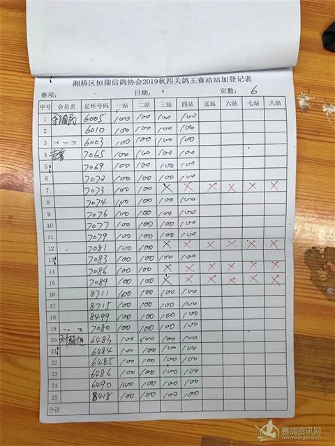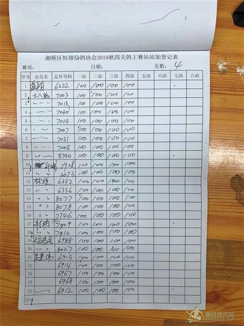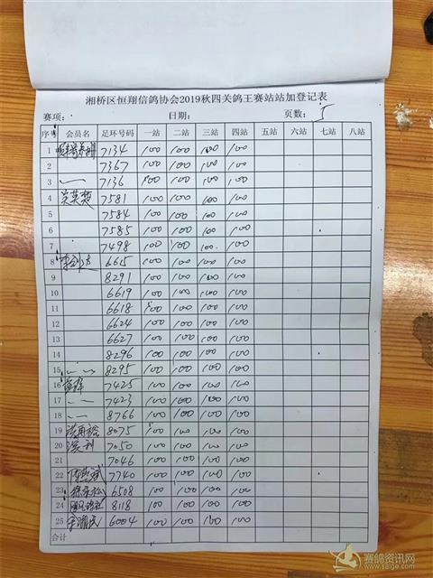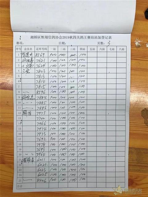 2019年秋四关鸽王赛站站加第四站福清站登记表
