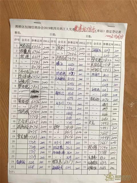 霞浦站大家乐指定107羽 鸽会提10%,剩100名内均分