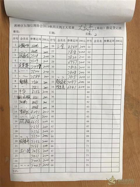 2019秋四关鸽王大奖赛第一关霞浦站大家乐指定登记表