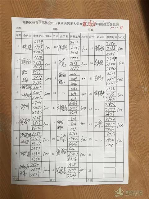 2019秋四关鸽王大奖赛第一关霞浦站3羽组指定登记表