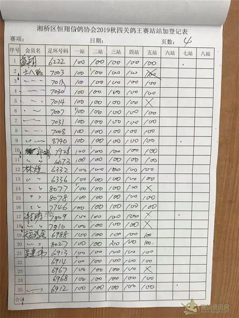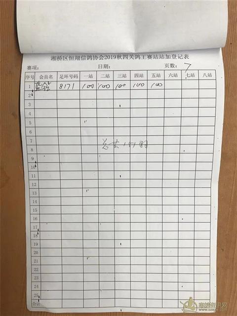 2019年秋季四关鸽王大奖赛站站加第一关霞浦站登记表