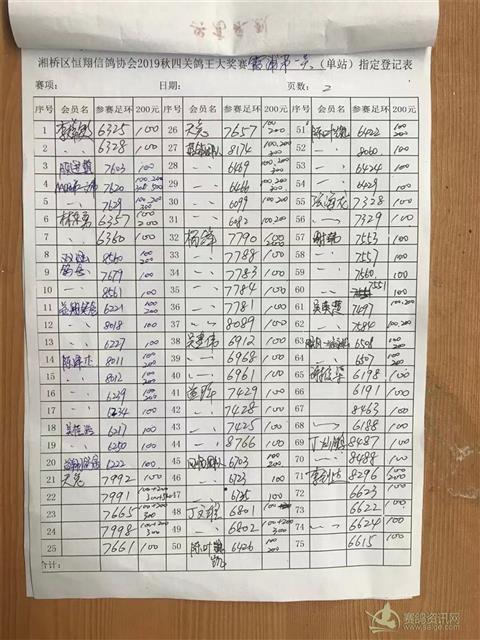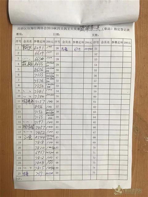 2019年秋季四关鸽王大奖赛第一关霞浦站指定表