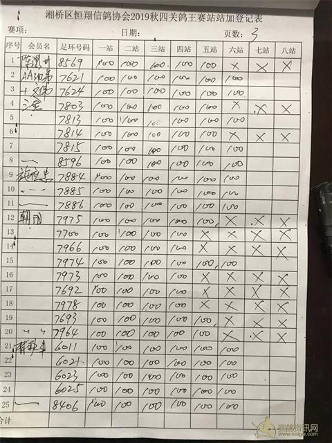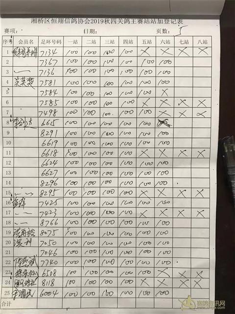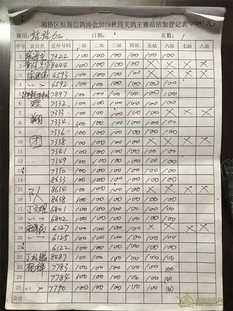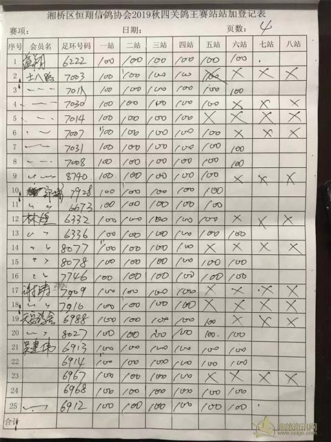 2019年秋季四关鸽王大奖赛站站加第二关福鼎站登记表(请各会员认真校对)