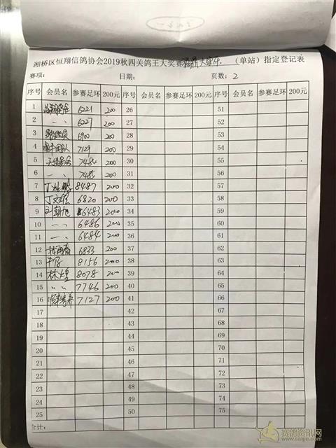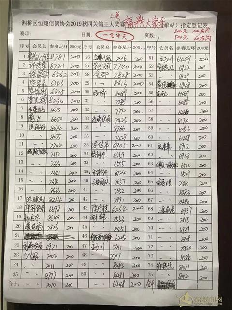 2019年秋季四关鸽王大奖赛第二关福鼎大家乐指定登记表(请各会员认真校对)