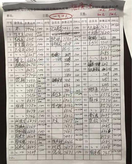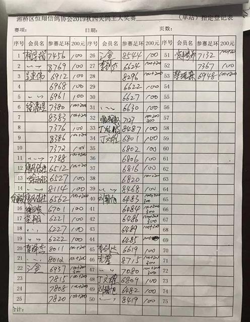 2019年秋四关鸽王大赛第二关福鼎站100元200元300元组指定表(请各会员认真校对)