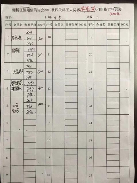 第三关平阳站指定300元组 5组*300元=1500元,鸽会提10%,存1350元,奖1名 第一名:1350元