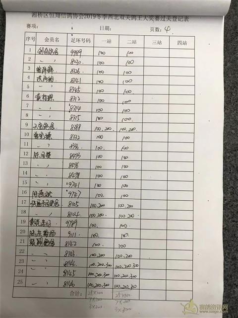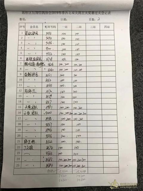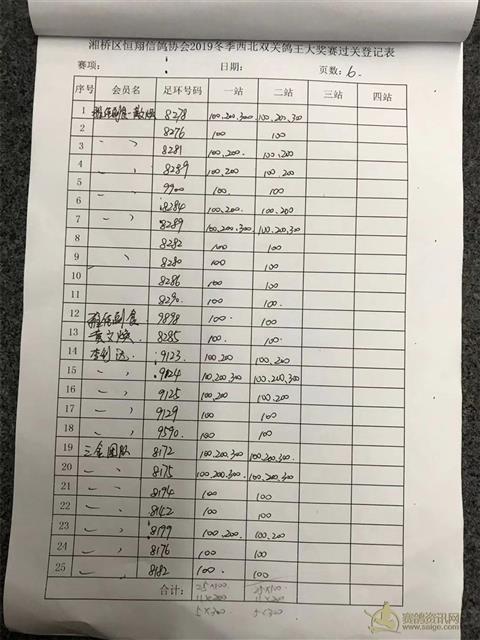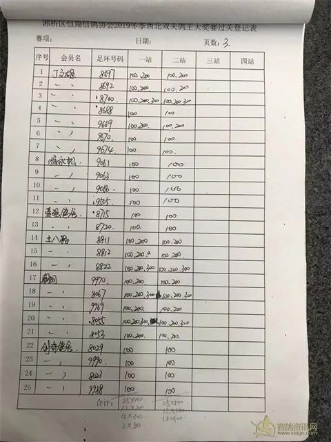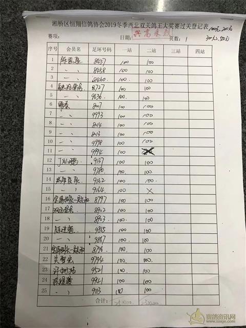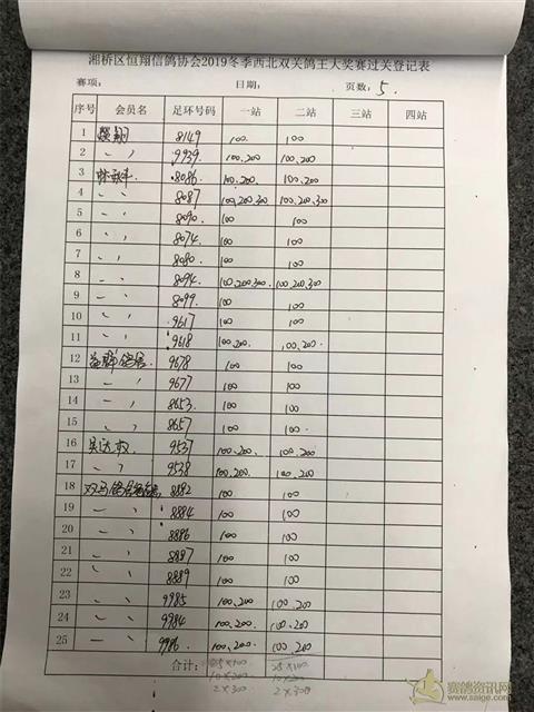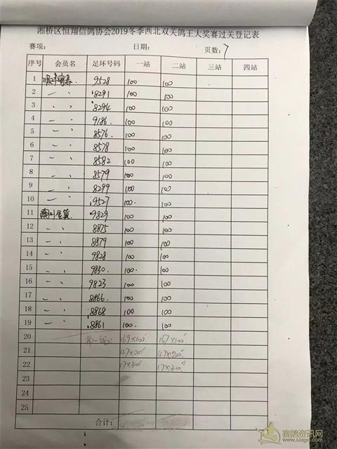 2019年冬季西北双关鸽王大奖赛第二站古雷站过关登记表