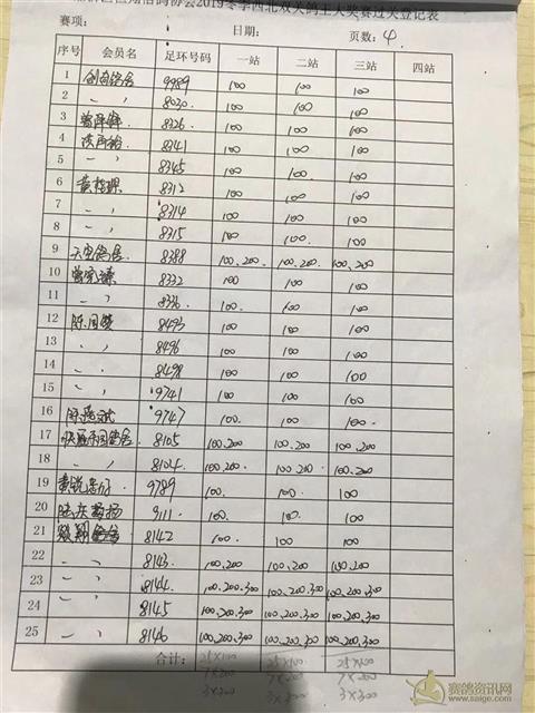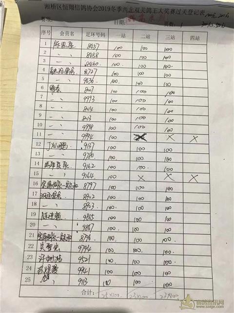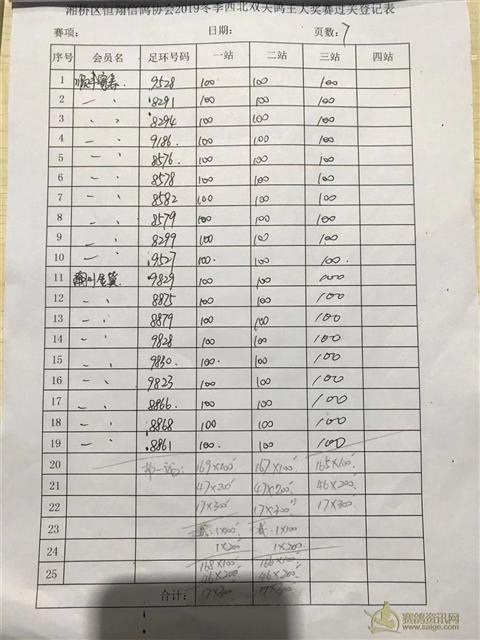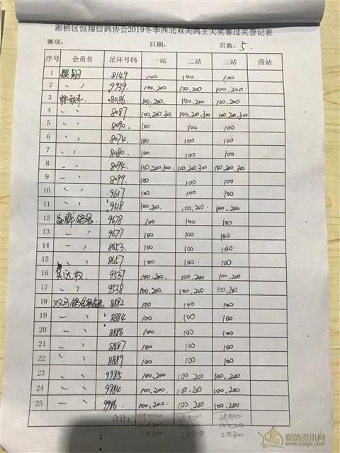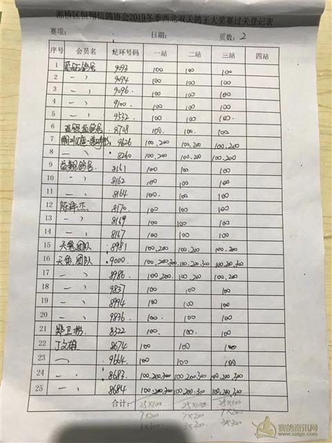 2019年冬季西北双关鸽王大奖赛第三站集美过关登记表