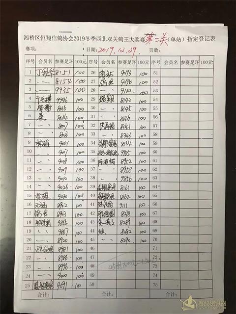 2019年冬季西北双关鸽王大奖赛第二关单站指定登记表