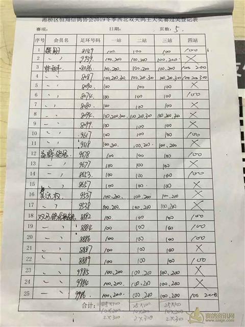 2019年冬季西北双关鸽王大奖赛过关登记表