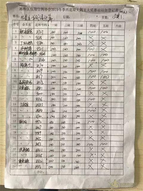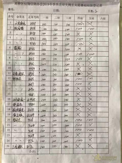 2019年冬季西北双关鸽王大奖赛第一关南城站站加登记表