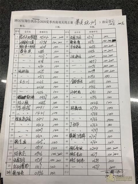 恒翔2020年夏季西南双关鸽王大奖赛第二关抚州站指定