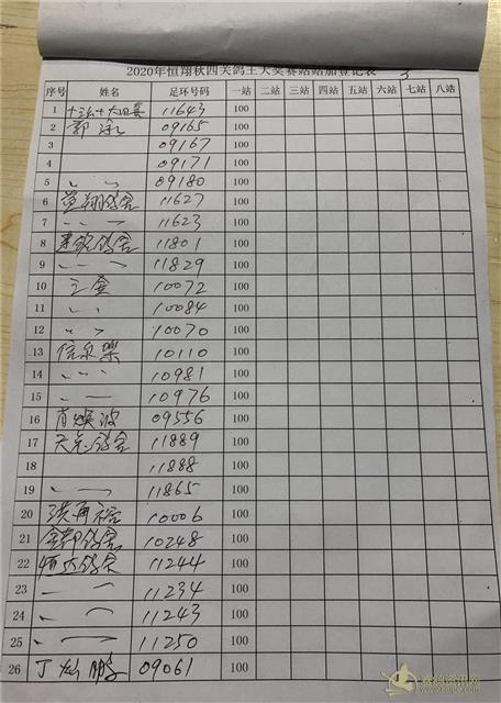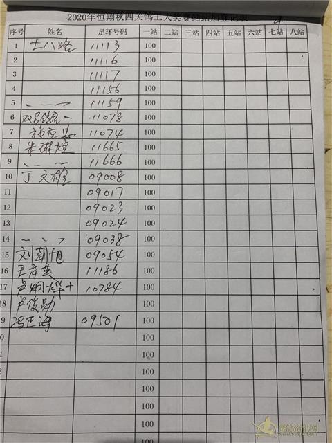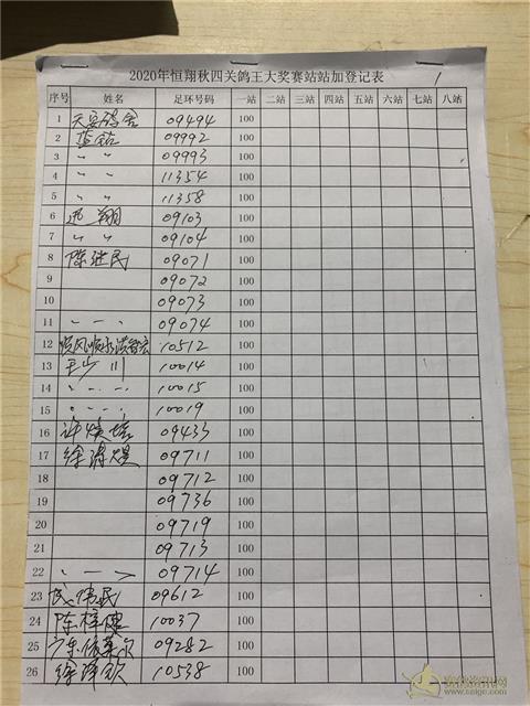 2020年恒翔秋四关鸽王大奖赛站站加第一站诏安站指定登记表