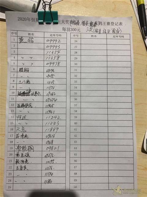 2020年恒翔秋四关鸽王大奖赛三关(福清、福安、霞浦)指定