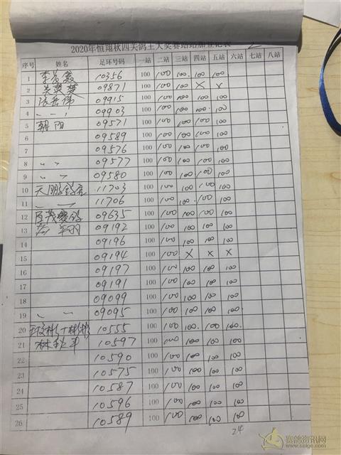 2020年恒翔秋四关鸽王大奖赛站站加第五站福安站