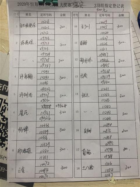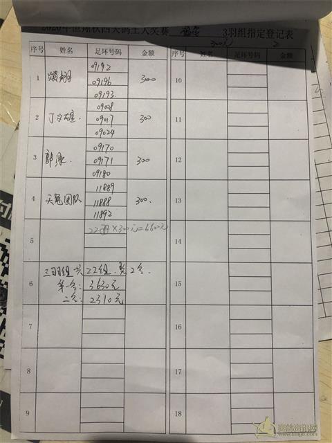 2020年秋四关鸽王大奖赛第一关福安站3羽组指定表