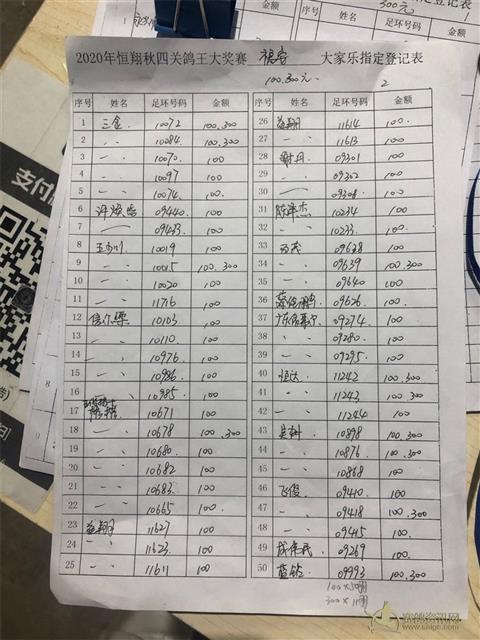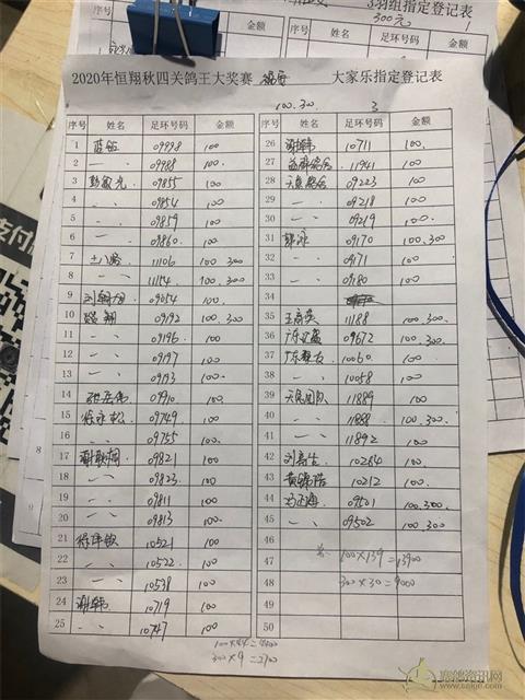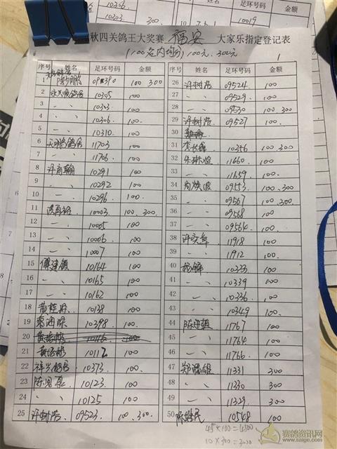 2020年秋四关鸽王大奖赛第一关福安站大家乐指定表