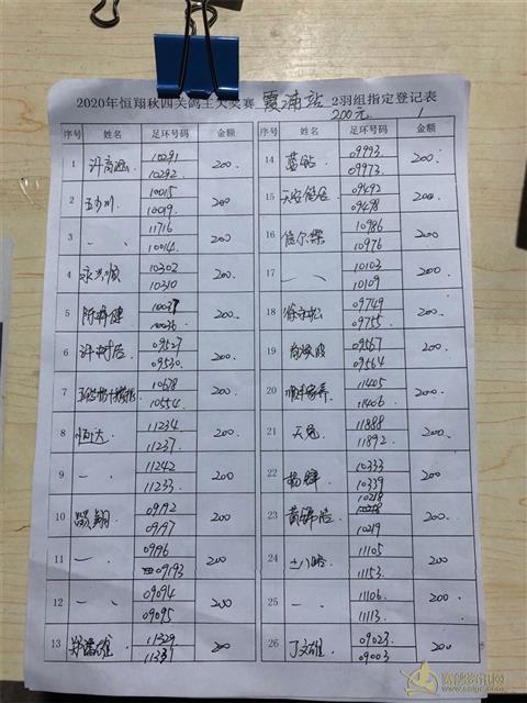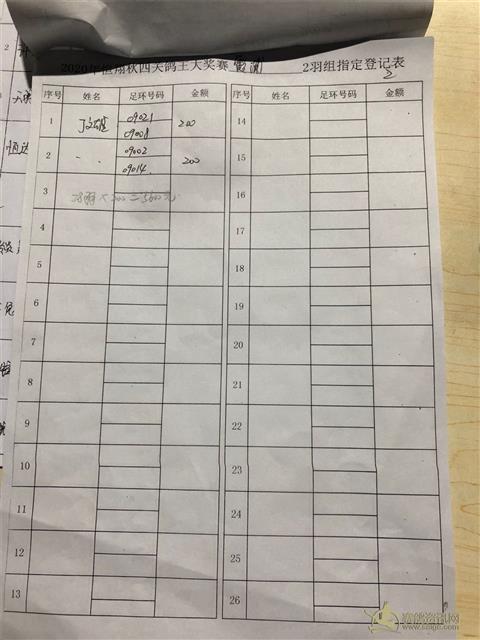 2020年秋四关鸽王大奖赛第二关霞浦站2羽组指定表
