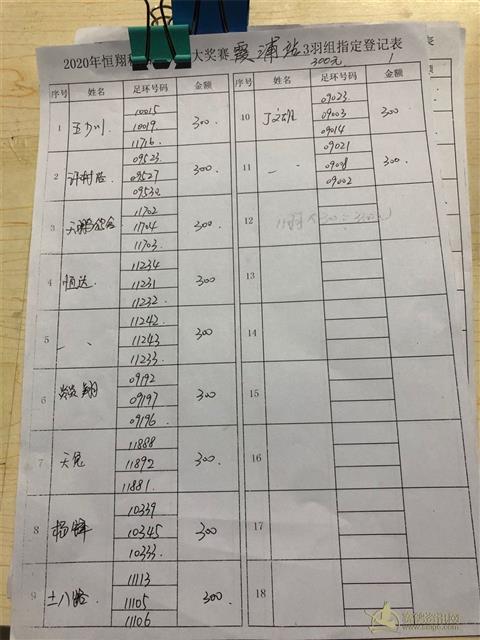 2020年秋四关鸽王大奖赛第二关霞浦站3羽组指定表