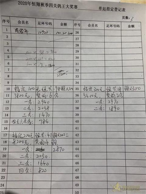 2020年秋四关鸽王大奖赛第四关温州站单站指定