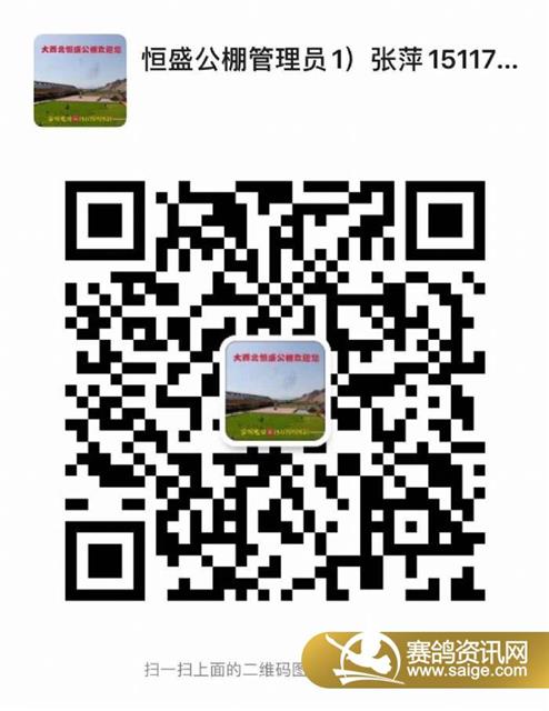 尊敬的各位鸽友: 恒盛公棚探视报名正在进行中,请在管理员处登记您的报名信息(参赛名+地区+电话+人数),如需网络视频探视的也可告知管理人员进行备注!鸽友可通过短信或微信报名,不接受电话口头报名。探视只能鸽主本人或委托代理,不允许别人代为探视!具体探视时间公棚会另行通知,如有报名后有事不能前来者,请提前告知公棚人员,感谢大家的支持和理解! 管理员电话:15117090521、18993082668 管理员微信: 管理员一